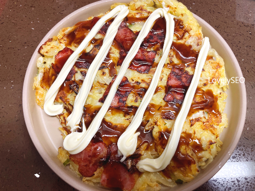 총재료로 오코노미야끼 중 사이즈로 2개까지 만들어집니다.]