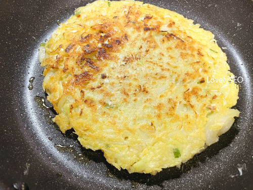뒤집으면 알맞게 노릇노릇 익은 상태가 되어요.
