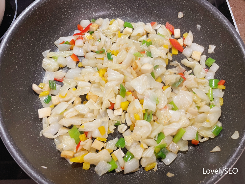 양파 먼저 넣고 1~2분가량 볶은 후에