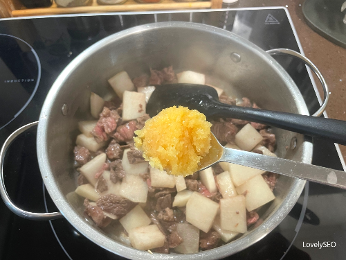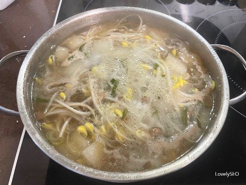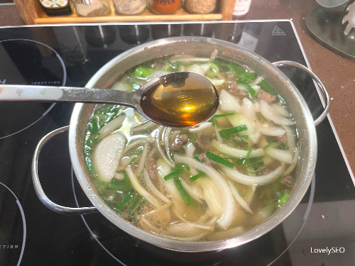 (소고기가 덜 익은 상태에서 물을 붓게 되면 잡내가 올라올 수 있어요.