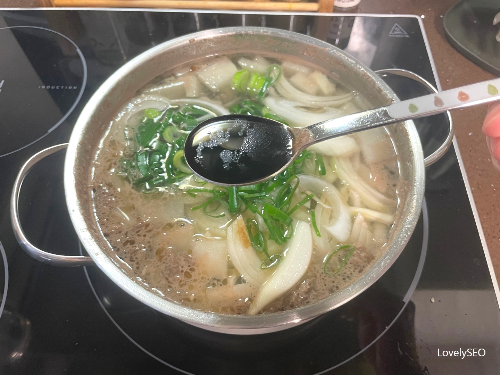 물 대신 집에 만들어 놓은 육수를 사용하시면 더 맛있겠죠?