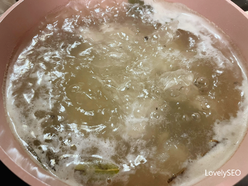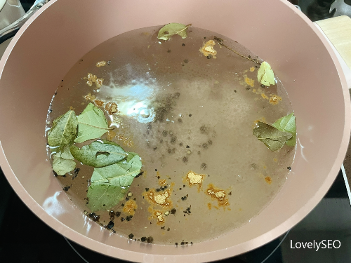 월계수잎과 통후추, 생강가루를 넣어 주세요.