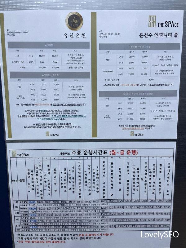 온천만 이용할 경우, 온천+찜질, 온천+인피니티 풀 등