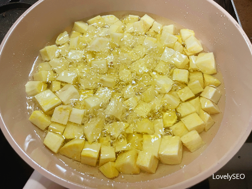 고구마 표면이 설탕으로 코팅되면서 광택이 나면 완성입니다:D