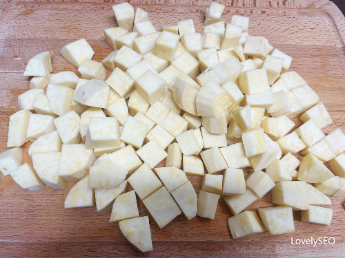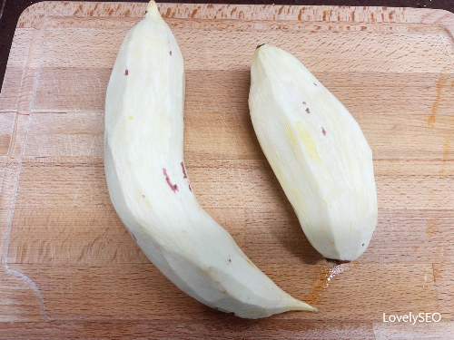 중간 크기의 고구마의 껍질은 잘 벗겨 주세요.