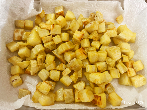 다 익은 고구마는 키친타월에서 기름을 제거합니다.
