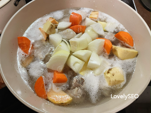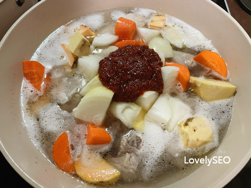 끓어오르면 고구마, 당근, 양파를 모두 넣고