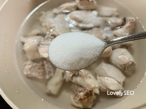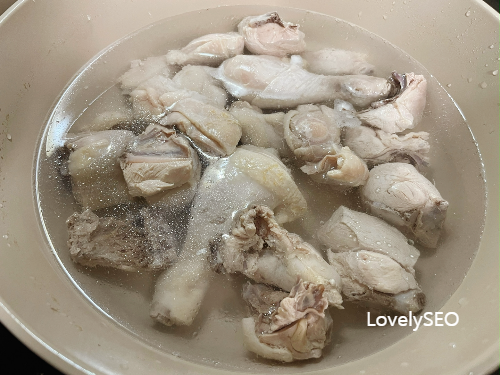 닭은 한 번 데쳐서 사용해요.