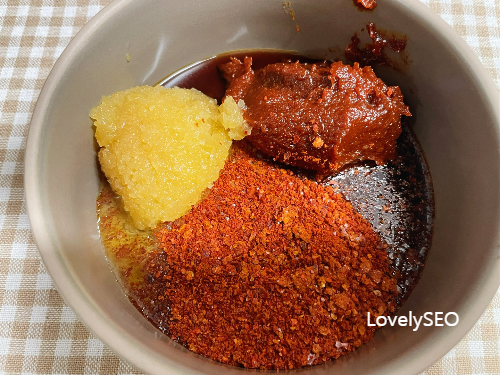고추장, 고춧가루, 다진 마늘, 간장, 올리고당을 넣고