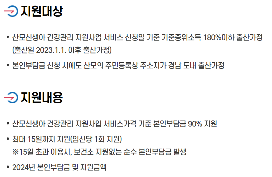 오늘은 경남 거주자에 대한 2024 산모 신생아 건강관리 지원사업에 대하여